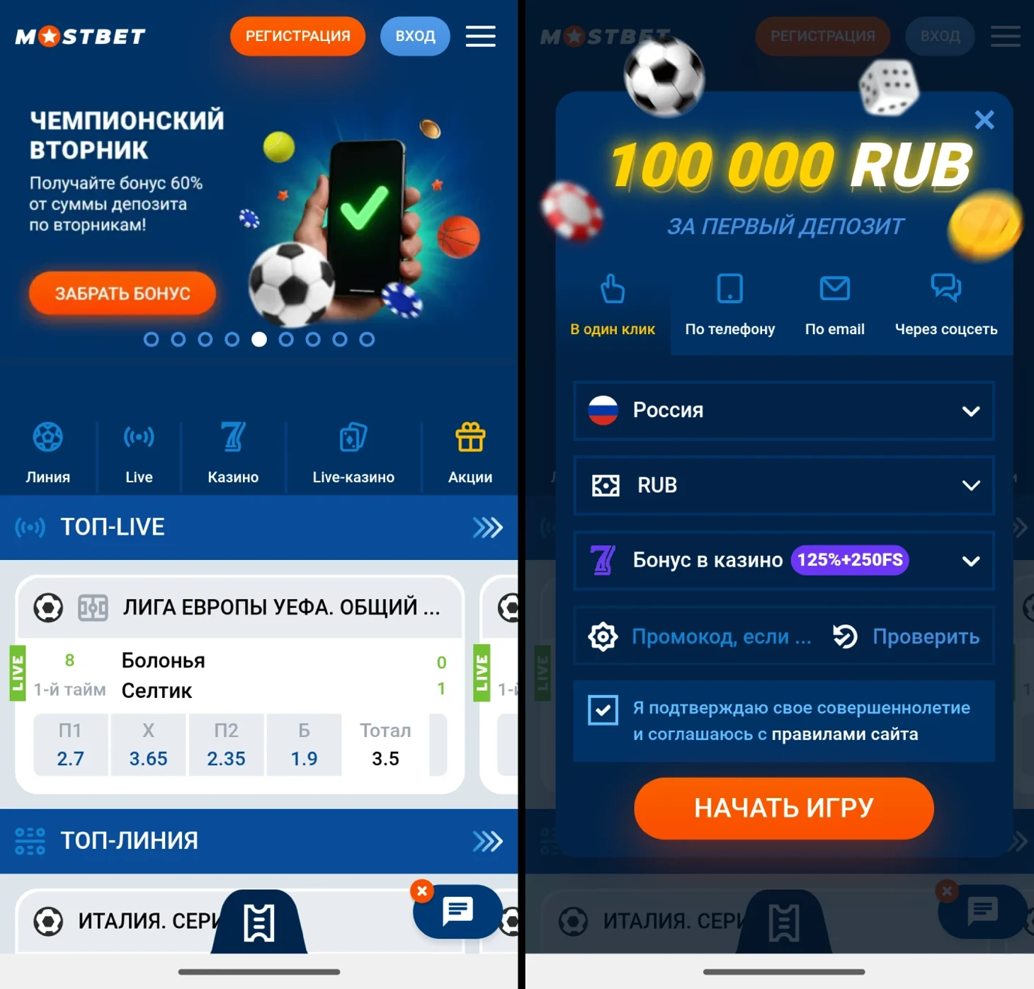 Бонус за регистрацию и первый депозит от MOSTBET – до 100 000 рублей