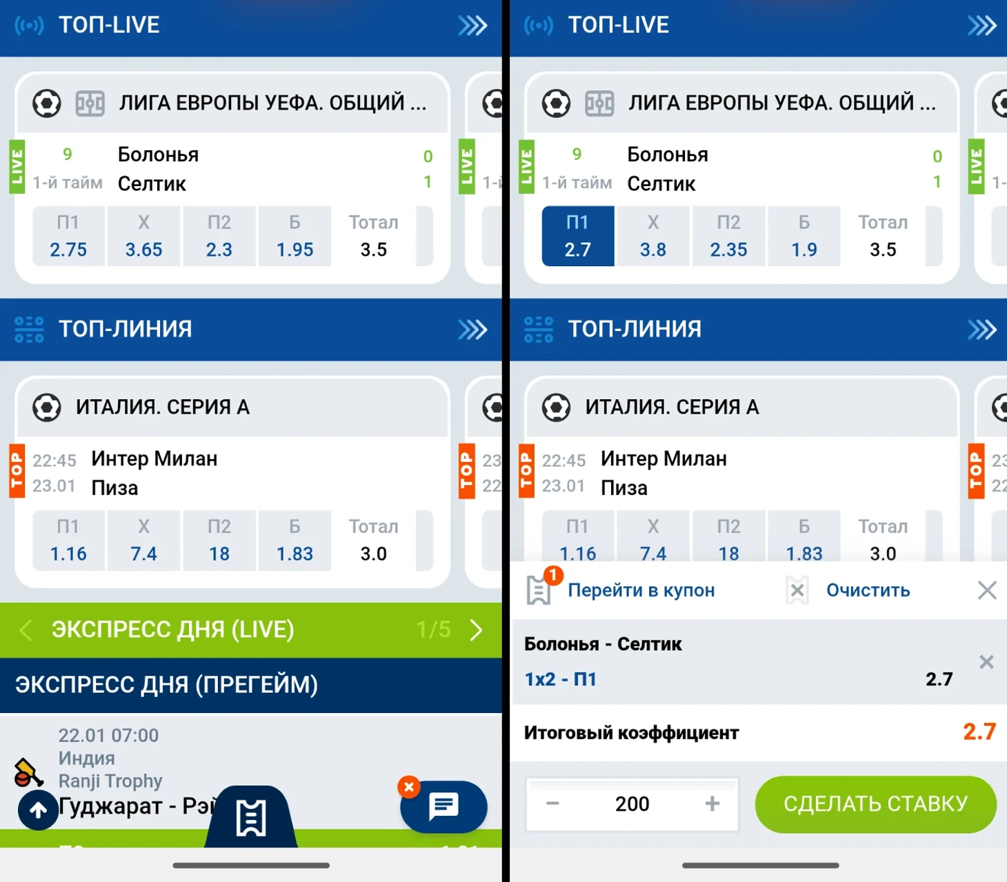 • наличие приложения для ставок.
